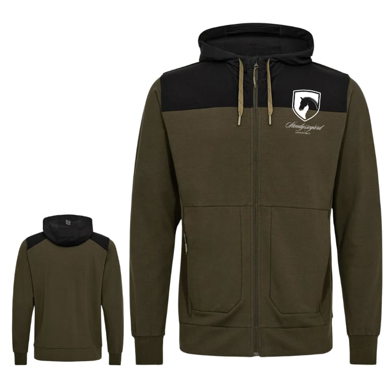 Årets Stendyssegård Hoodie 2026 med lynlås er en praktisk løsning, når du vil kunne tage et ekstra lag af og på i løbet af dagen. Den har gennemgående lynlås med hagebeskytter, så lukningen føles mere afskærmet ved halsen, og den påsyede hætte kan justeres, så pasformen kan tilpasses efter behov.